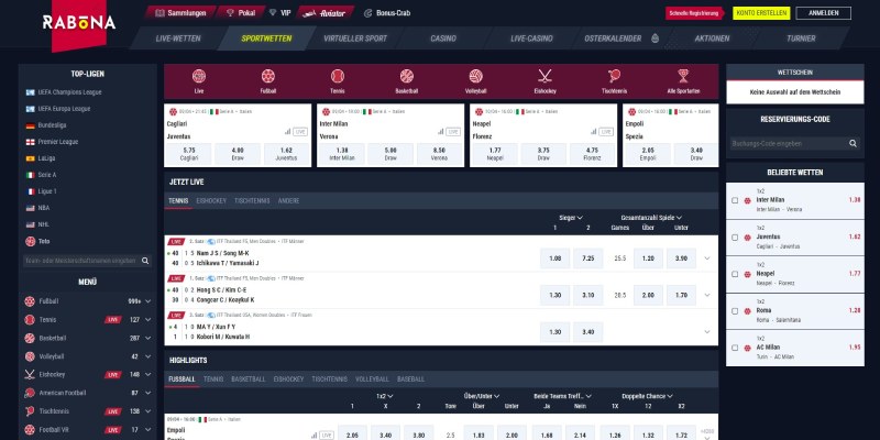 Rabona Wetten auf zahlreiche Sportarten möglich